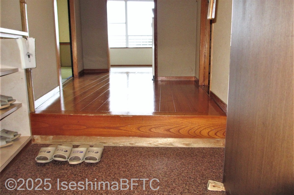 浴室入口有効幅(ベンチを除いて)61センチ、2枚引き込み戸。段差なし。