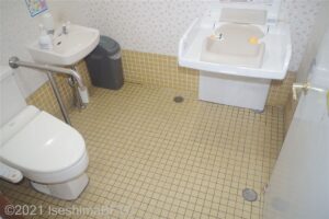 東側トイレ 男性用トイレ内部。便器にはすべて温水洗浄便座付き。