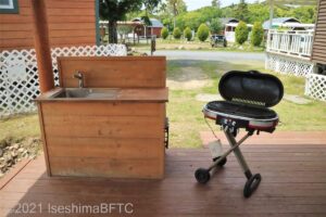 Weber社製ガスグリルで本格的なアメリカンバーベキューを。グランピングの宿泊料金には食事が含まれている。