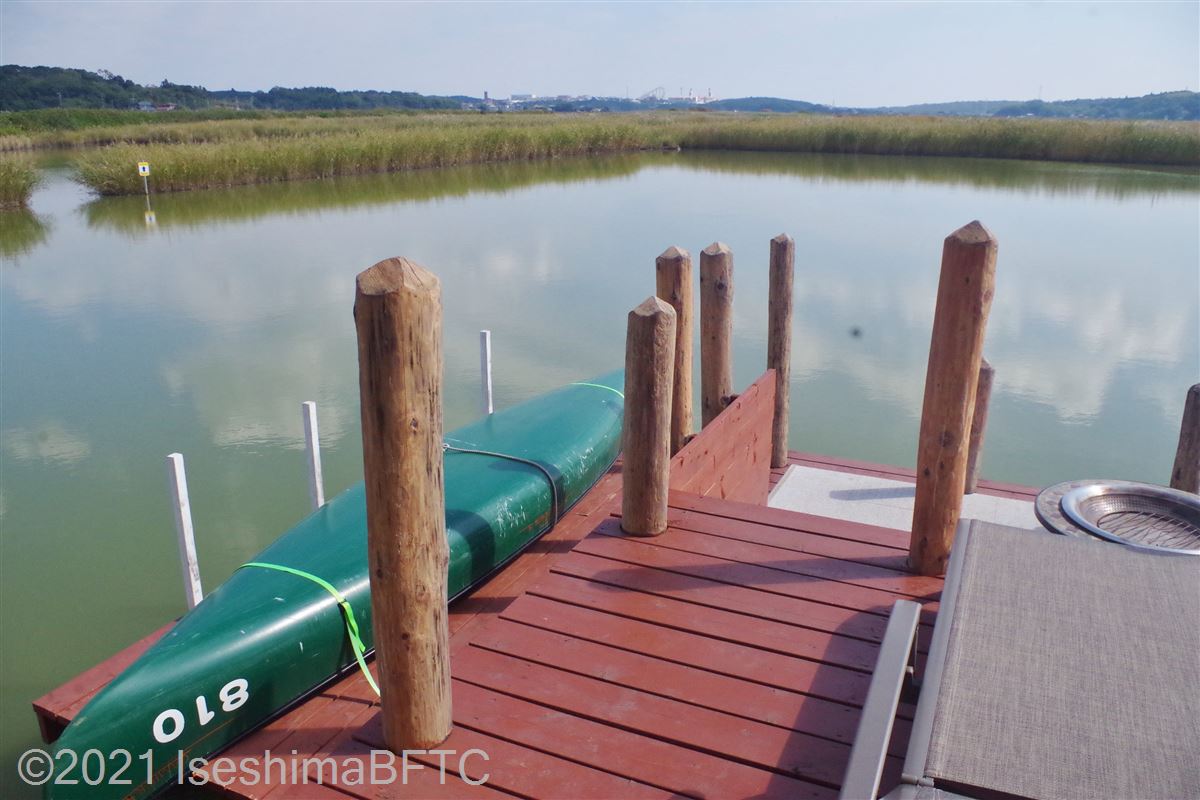 プライベート桟橋から、思い立った時にカヌーでラグーンへ漕ぎ出せる。