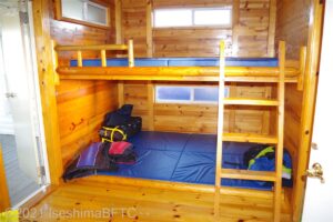 室内にはソファベッドと2段ベッドがあり、最大6名宿泊できる。