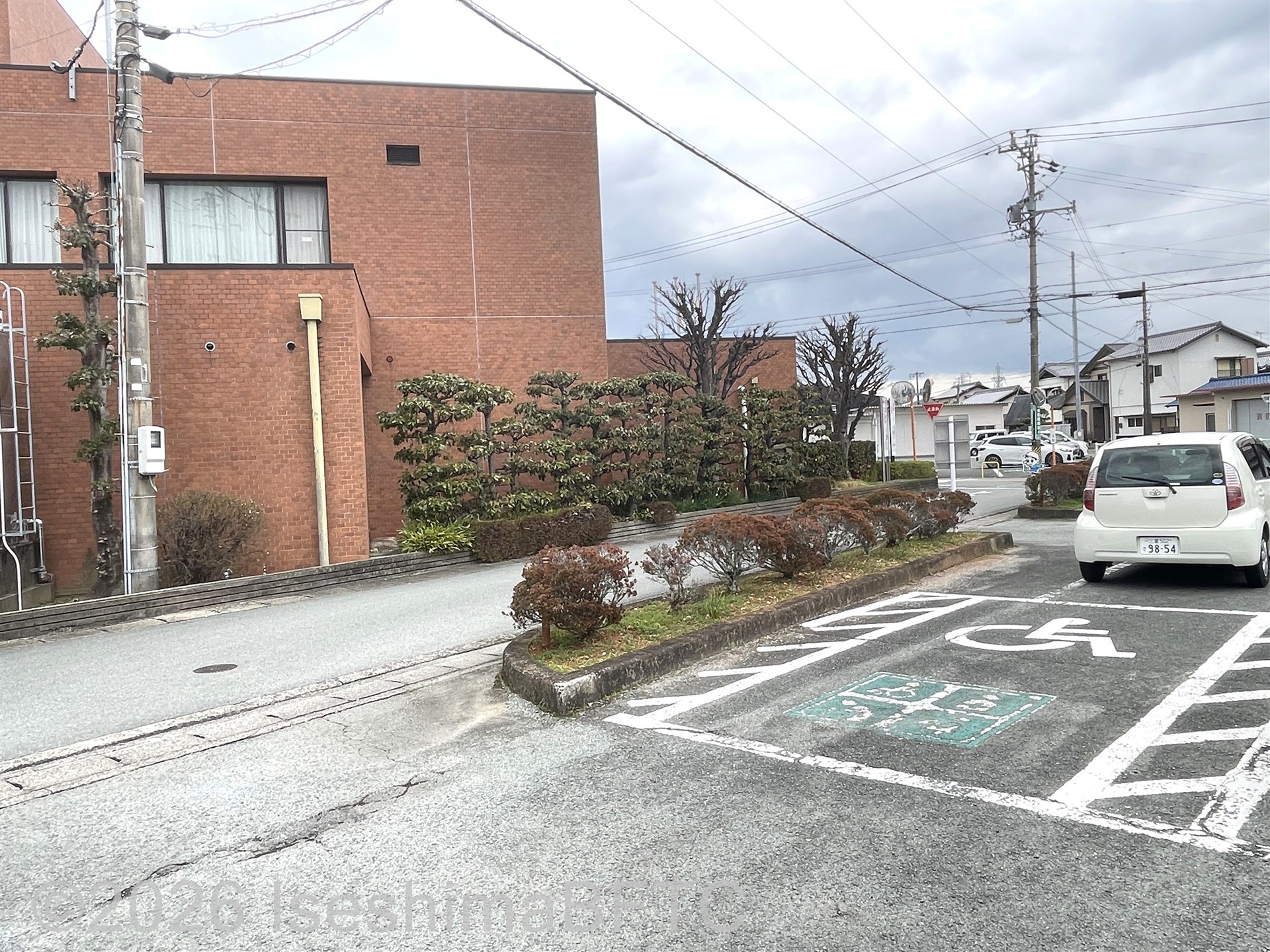 建物正面の道をはさんだ前の駐車場に、おもいやり駐車場あり。