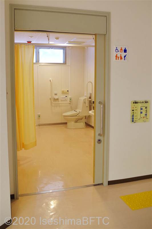 手前にあるオストメイトと奥のユニバーサルシートとの間はカーテンで仕切ることができる。