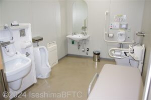 緊急ボタン・便器手元に手洗い・ベビーチェア・フィッティングボード(着替え台)・幼児用小便器